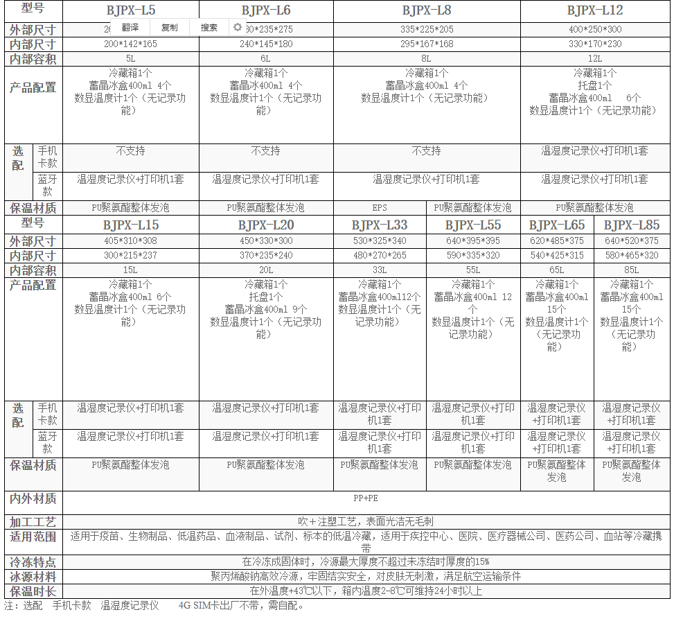 博科BJPX-L65便攜式冷藏箱_醫(yī)用2—8度便攜式冷藏箱